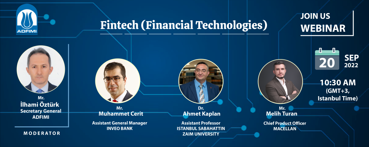 Topic : Fintech (Financial Technologies)Date : 20 September 2022Time : 10:30 AM Istanbul time (GMT+3).Moderator: Mr.İlhami ÖztürkADFIMI, Secretary GeneralPanelists:Muhammet Mustafa CERİT INVEO BANK, Assistant...