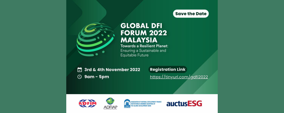 The Global DFI Forum 2022 with the theme; “Towards a Resilient Planet: Ensuring a Sustainable and Equitable Future” which is jointly organized by ADFIMI, ADFIM Malaysia, ADFIAP, and AuctusESG has...